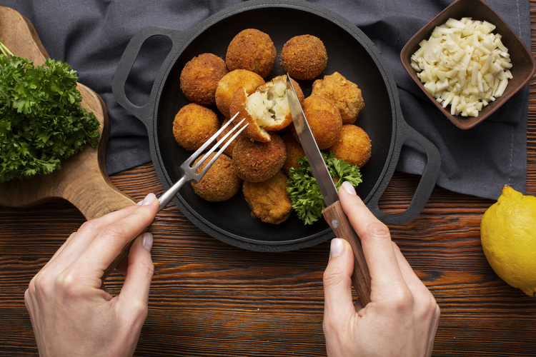 - Τηγανίστε τα: Ζεστάνετε το λάδι σε ένα τηγάνι σε μέτρια προς υψηλή φωτιά και τηγανίστε τα Arancini για 2-3 λεπτά ή μέχρι να ροδίσουν και να γίνουν τραγανά εξωτερικά.