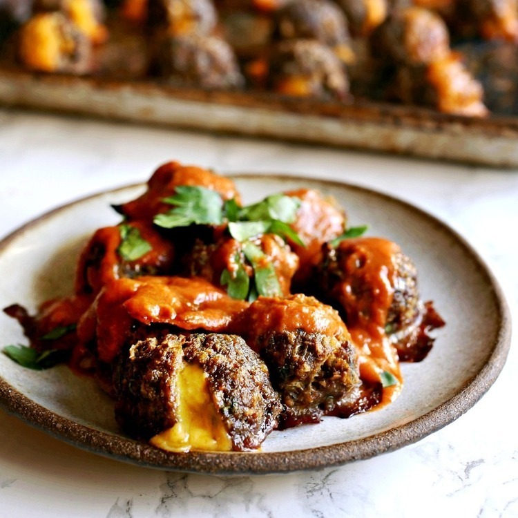 Πασπαλίζετε με τριμμένο κίτρινο τυρί και εάν επιθυμείτε, συνοδεύετε με κόκκινη σάλτσα ή σως barbeque.
