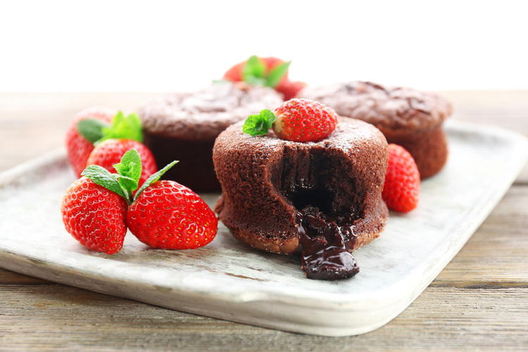- Ψήστε για 10-12 λεπτά. Τα σουφλέ πρέπει να είναι σφιχτά εξωτερικά αλλά να έχουν ρευστό κέντρο.