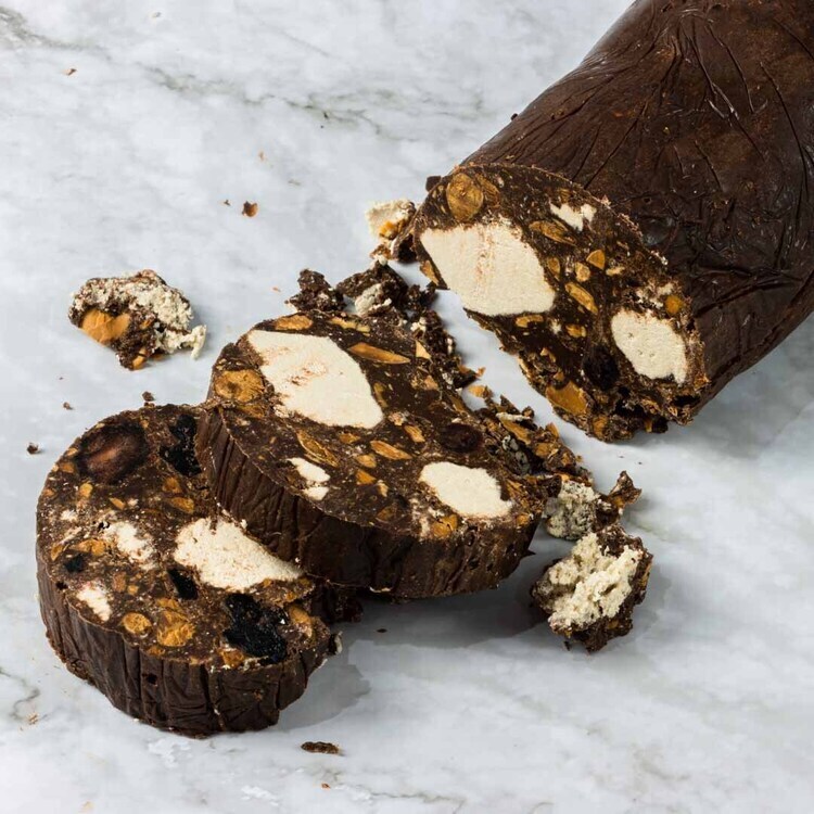 - Όταν το μωσαϊκό έχει παγώσει και έχει σταθεροποιηθεί, κόψτε το σε κομμάτια και σερβίρετε. Μπορείτε να το διακοσμήσετε με επιπλέον αμύγδαλα ή καρύδια, αν θέλετε.