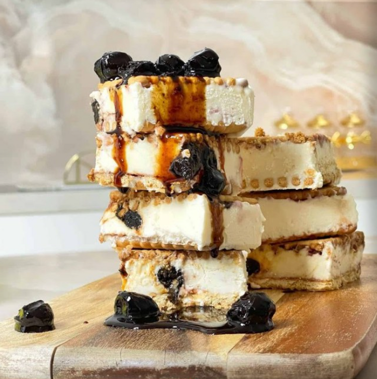 Έπειτα απλώνετε μια παχιά στρώση από το μείγμα-παγωτό και αν θέλετε βάζετε το γλυκό του κουταλιού.
